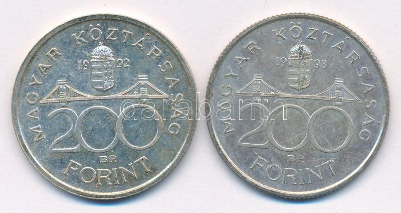 Leírás: 1992-1993. 200Ft Ag "MNB" (2xklf) T:AU,XF patina, kis karc