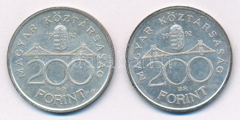 Leírás: 1992. 200Ft Ag "MNB" (2x) T:AU,XF patina