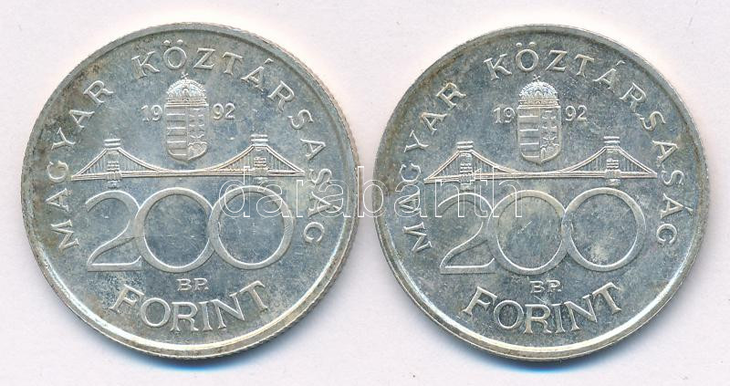 1992. 200Ft Ag "MNB" (2x) T:AU,XF patina, az egyiken kis ph