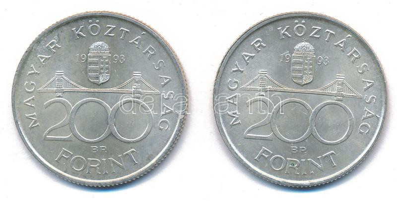 Leírás: 1993. 200Ft Ag "MNB" (2x) T:AU,XF