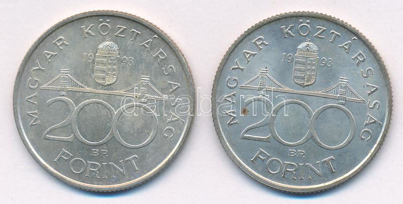 Leírás: 1993. 200Ft Ag "MNB" (2x) T:AU,XF patina