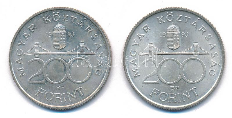Leírás: 1993. 200Ft Ag "MNB" (2x) T:AU patina Adamo F13