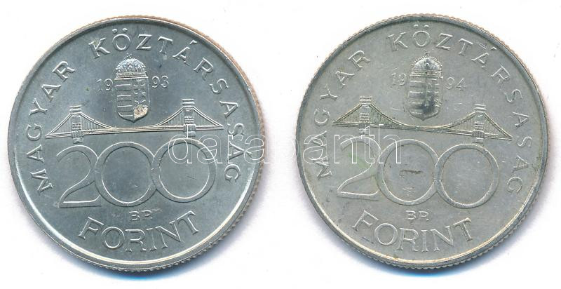 Leírás: 1993. 200Ft Ag "MNB" + 1994. 200Ft "Deák" T:AU,XF Adamo F13, F13.1