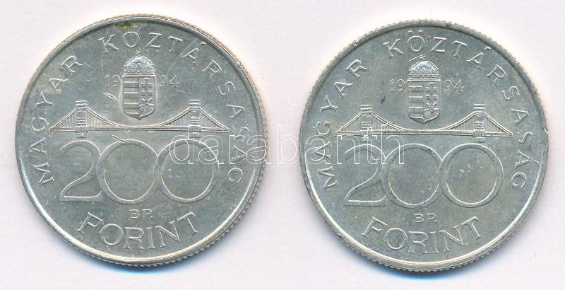 Leírás: 1994. 200Ft Ag "Deák" (2x) T:AU,XF patina, kis karc