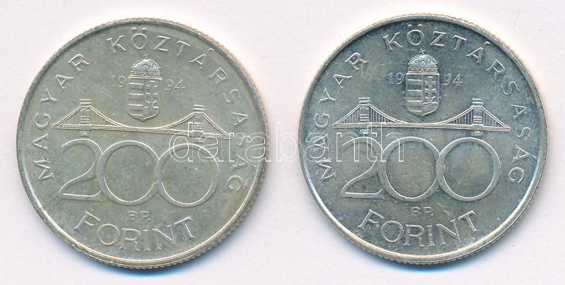Leírás: 1994. 200Ft Ag "Deák" (2x) T:AU,XF patina, kis ph