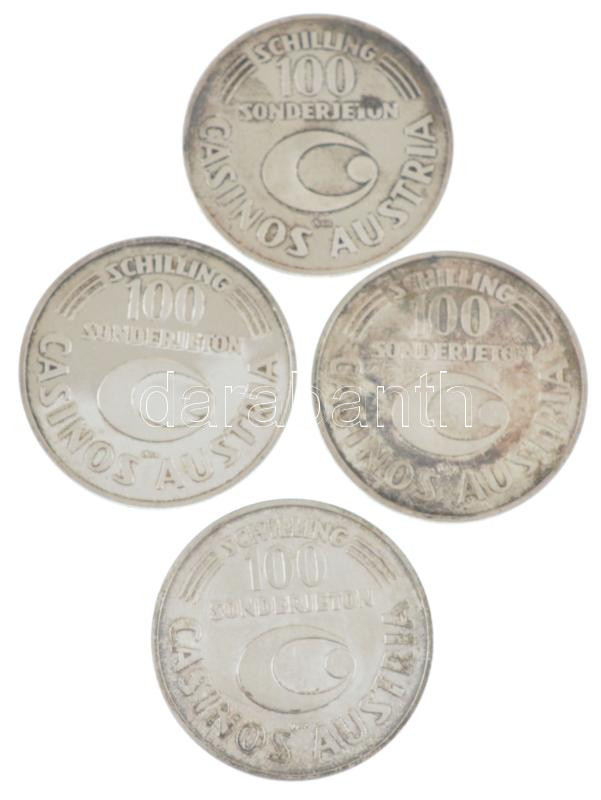 Ausztria 1987-1988. 100Sch "Sonderjeton Casinos Austria" (4x... https://www.darabanth.com/hu/438-Gyorsarveres/438.0/Numizmatika/Papir-es-fem-szuksegpenzek~1500006/Ausztria-1987-1988-100Sch-Sonderjeton-Casinos-Austria-4xklf-jelzett-Ag-kaszino-zsetonok-9-75g~II2856557