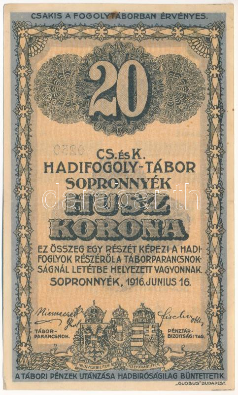 Sopronnyék / hadifogolytábor 1916. 20K arab sorozat- és sorszámmal T:F... https://www.darabanth.com/hu/438-Gyorsarveres/438.0/Numizmatika/Papir-es-fem-szuksegpenzek~1500006/Sopronnyek-hadifogolytabor-1916-20K-arab-sorozat-es-sorszammal-TF-fo-egyebkent-szep-pa~II2858824