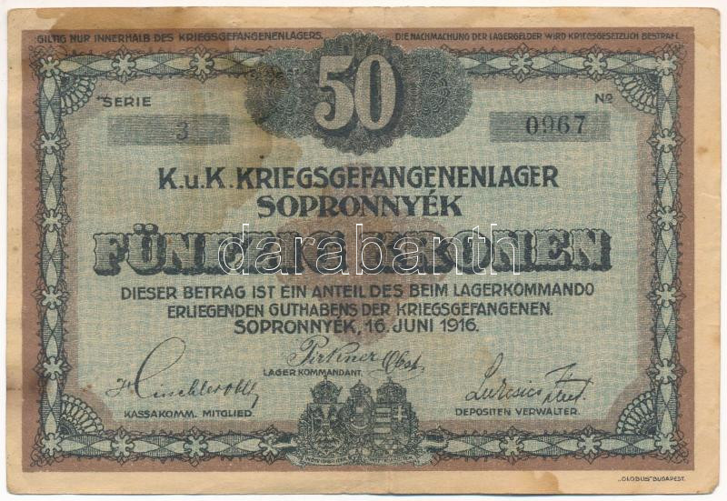 Sopronnyék / hadifogolytábor 1916. 50K arab sorozat- és sorszámmal T:F... https://www.darabanth.com/hu/438-Gyorsarveres/438.0/Numizmatika/Papir-es-fem-szuksegpenzek~1500006/Sopronnyek-hadifogolytabor-1916-50K-arab-sorozat-es-sorszammal-TF-fo~II2858835