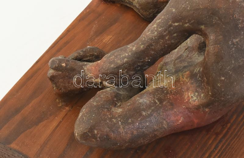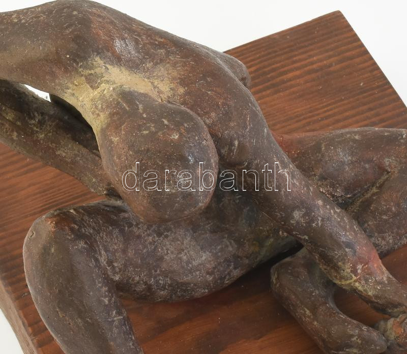 Leírás: Tüskehúzó. Kerámia kisplasztika, jelzés nélkül fa alapon. 22 cm, m: 18 cm