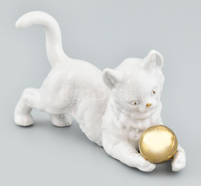 Leírás: Cica labdával, porcelán figura, jelzés nélkül, hibátlan, h: 13,5 cm