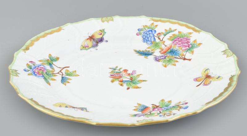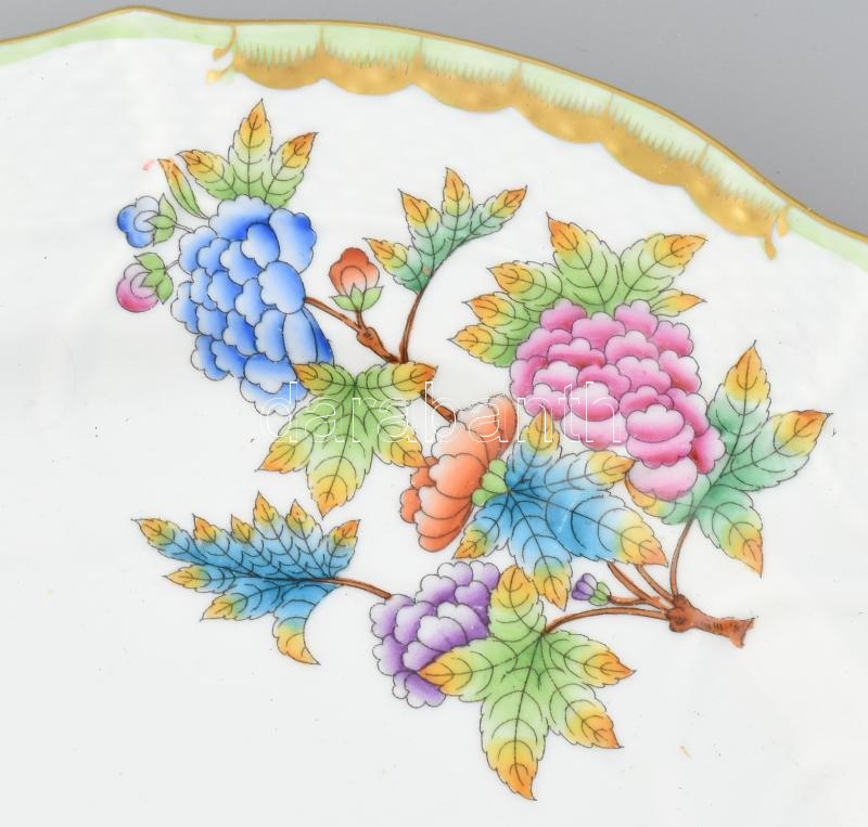 Leírás: Herendi Viktória mintás süteményes tál, jelzett: III. osztály, minimális gyári égetési hibák, d: 30 cm
