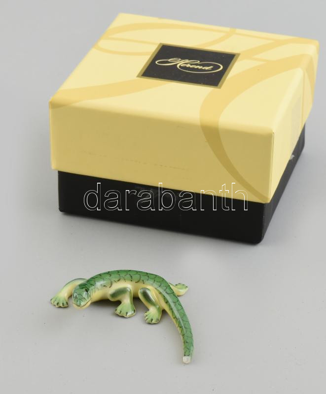 Leírás: Herendi mini gyík figura. Kézzel festett, jelzett, farka letört, restaurálható 7 cm Eredeti dobozával