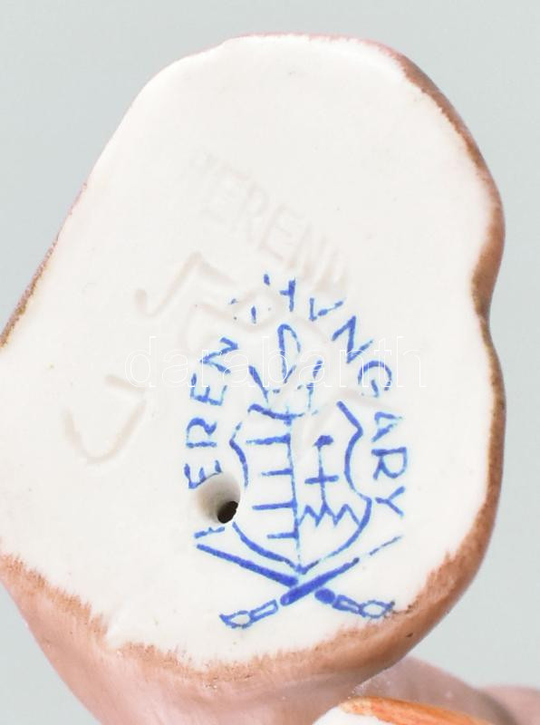 Leírás: Herendi porcelán sepregető lányka, kézzel festett, jelzett, kopásokkal, m: 9 cm