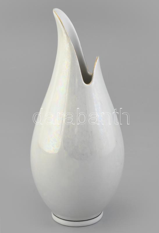 Leírás: Hollóházi design váza irizáló mázzal, jelzett, kopással 21 cm