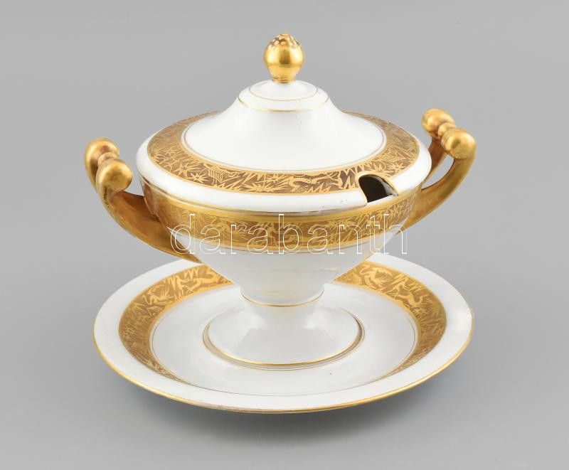 Hutschenreuter porcelán szószos kínáló. Aranyozott jelzett, kis kopáss... https://www.darabanth.com/hu/438-Gyorsarveres/438.0/Porcelan-keramia-uveg/Porcelan~500006/Hutschenreuter-porcelan-szoszos-kinalo-Aranyozott-jelzett-kis-kopassal-m-20-cm-d-22-cm~II2872327