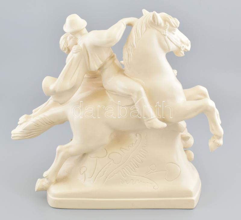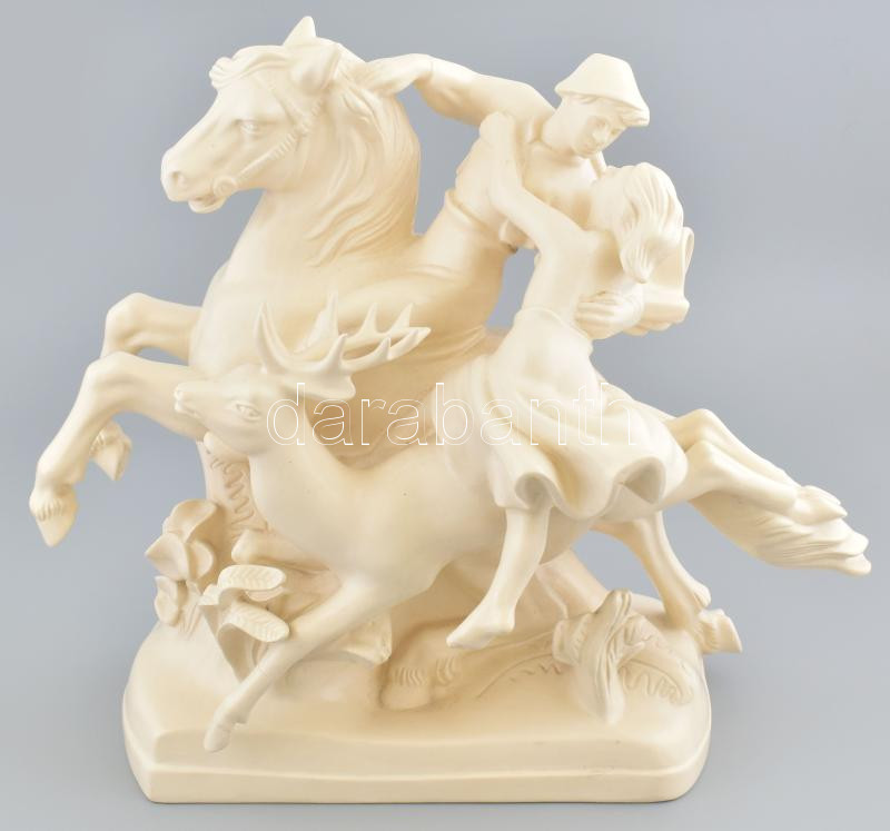 Szerelmes pár szarvason és lovon, fehér mázas fajansz, restaurált, m. ... https://www.darabanth.com/hu/438-Gyorsarveres/438.0/Porcelan-keramia-uveg/Porcelan~500006/Szerelmes-par-szarvason-es-lovon-feher-mazas-fajansz-restauralt-m-35-cm-h-38-cm~II2861481