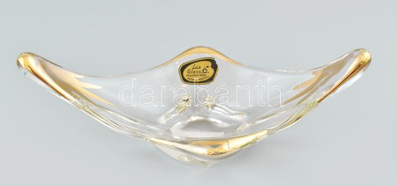 Leírás: Osztrák, üveg kínáló, jelzett, kopásokkal, 28x15 cm