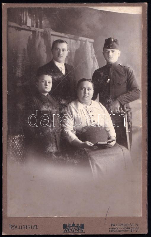 cca 1900 Családi portré, rajta katona, keményhátú fotó a budapesti Hun... https://www.darabanth.com/hu/439-Gyorsarveres/439.0/Fotomuveszet/Foto~1000023/cca-1900-Csaladi-portre-rajta-katona-kemenyhatu-foto-a-budapesti-Hunnia-muterembol-kopas~II2881511