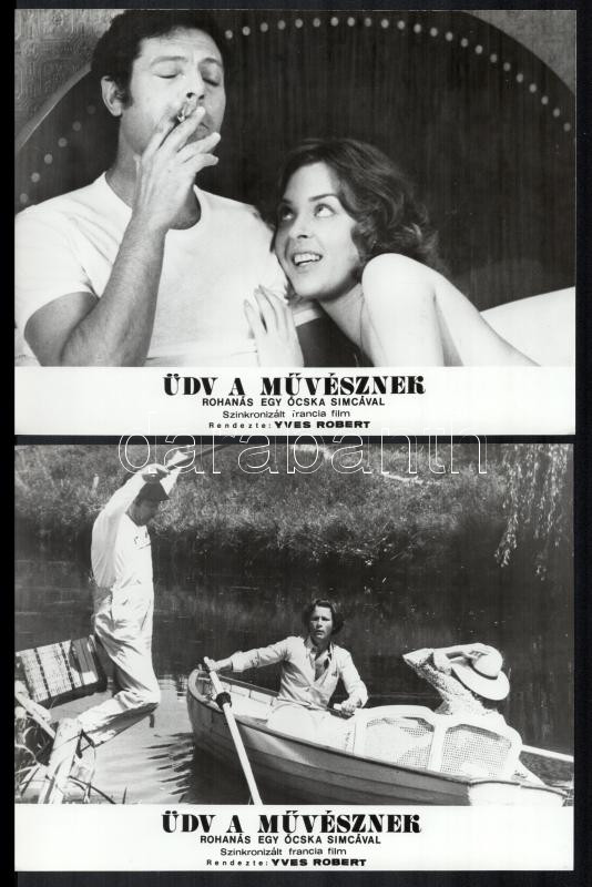 cca 1989 előtt készült ,,Üdv a művésznek" című francia film jelenetei és szereplői, 15 db vintage produkciós filmfotó ezüst zselatinos fotópapíron, a használatból eredő (esetleges) kisebb hibákkal, 18x24 cm