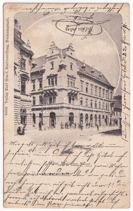 1901 Nagyszeben, Hermannstadt, Sibiu; Römischer Kaiser (Római császár)... https://www.darabanth.com/hu/439-Gyorsarveres/439.0/Kepeslapok/Erdely~2000007/1901-Nagyszeben-Hermannstadt-Sibiu-Romischer-Kaiser-Romai-csaszar-szalloda-divatterem-u~II2882814