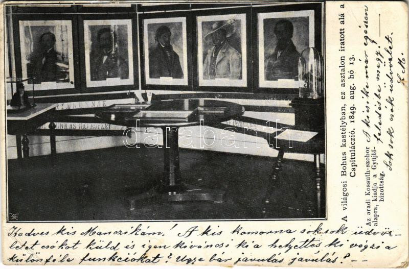 1903 Világos, Siria; Bohus kastély, ez asztalon íratott alá a Kapituláció 1849. augusztus 13-án. Az aradi Kossuth-szobor alapra, kiadja a Gyűjtőbizottság / historical table from the castle (EB)