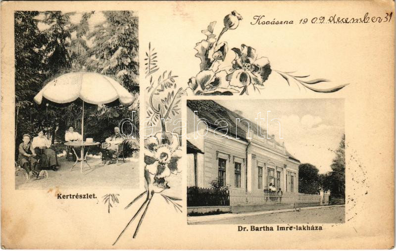 1909 Kovászna, Covasna; Dr. Bartha Imre lakháza, villa, kert. Bogdán F... https://www.darabanth.com/hu/439-Gyorsarveres/439.0/Kepeslapok/Erdely~2000007/1909-Kovaszna-Covasna-Dr-Bartha-Imre-lakhaza-villa-kert-Bogdan-F-fenykepesz-villa-ga~II2885415