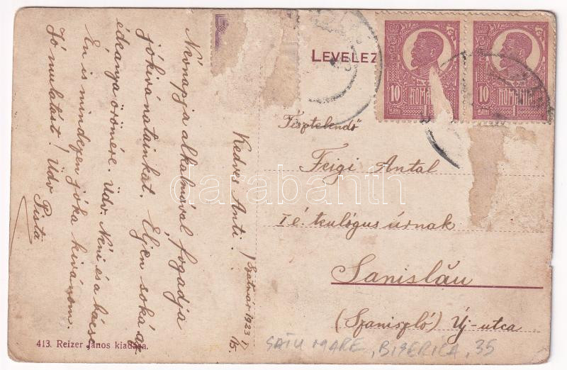 1923 Szatmárnémeti, Szatmár, Satu Mare; Jézus szíve temploma (Kálvária), Jézus Társasági konviktus. Reizer János kiadása / calvary church, theological dormitory, boarding school (szakadás / tear)