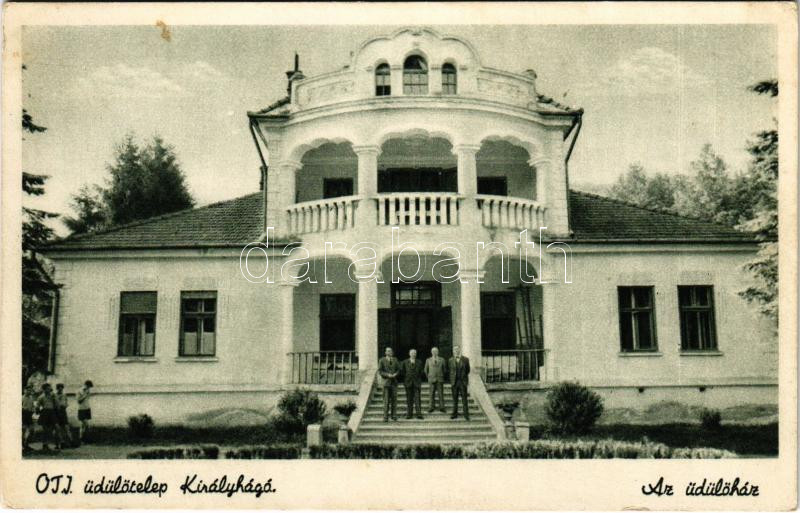 Leírás: 1943 Királyhágó, Bucsa, Bucea; OTI üdülőtelep, üdülőház. A dolgozó ember legnagyobb kincse az egészség! / holiday resort, villa (EK)