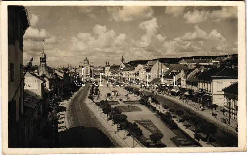 Leírás: 1944 Marosvásárhely, Targu Mures; Fő tér, üzletek, Körtesi Károly fényképész felvétele és kiadása / square, shops