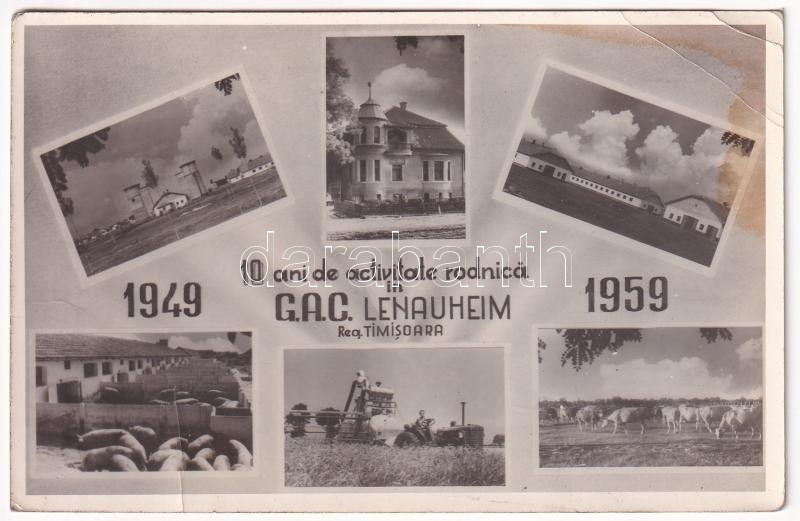 1962 Csatád, Lenauheim (Temes); 10 ani de activitate rodnica in G.A.C. Lenauheim Reg. Timisoara 1949-1959 / Román szocialista mezőgazdasági propaganda / Romanian socialist agricultural propaganda (non PC) (EB)