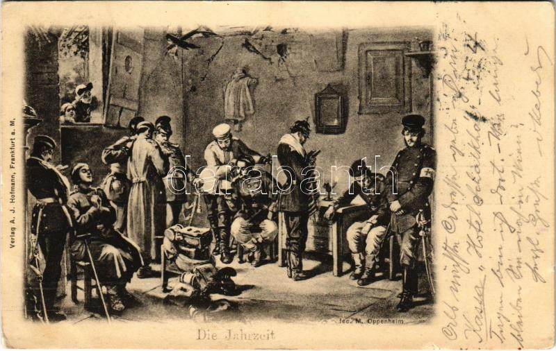 Leírás: 1903 Die Jahrzeit / Judaica art postcard. Verlag A. J. Hofmann s: M. Oppenheim (kis szakadás / small tear)