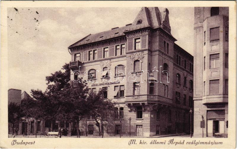 1936 Budapest II. Zsigmond tér, M. kir. állami Árpád reálgimnázium (az iskola egy bérház lakásaiból lett kialakítva, a gimnázium új épülete 1940-ben készült el a III. kerületi Nagyszombat utcában). Pintér József kiadása (EK)