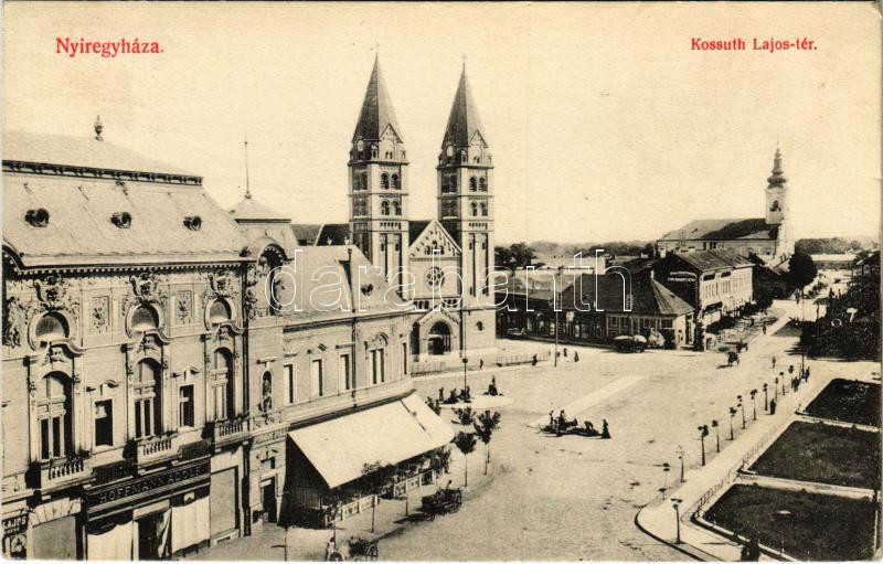 Leírás: Nyíregyháza, Kossuth Lajos tér, Hoffmann Adolf, Prok Pál üzlete, piac / square, shops, market (EK)