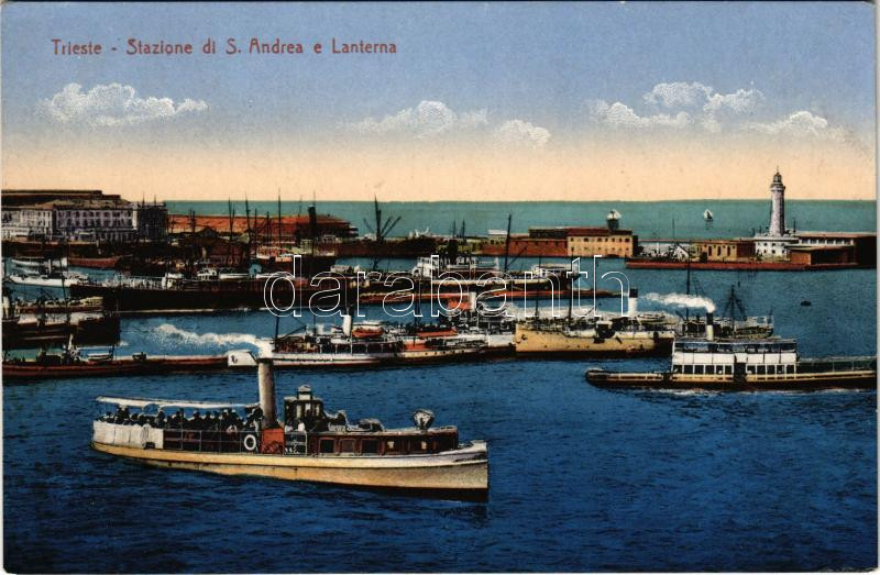Trieste, Trieszt; Stazione di S. Andrea e Lanterna / port, steamships,... https://www.darabanth.com/hu/439-Gyorsarveres/439.0/Kepeslapok/Olaszorszag~2000068/Trieste-Trieszt-Stazione-di-S-Andrea-e-Lanterna-port-steamships-lighthouse~II2884023