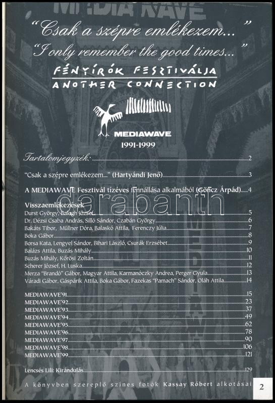 Leírás: "Csak a szépre emlékezem..." Fényírók fesztiválja. Miadiawave 1991-1999. Győr, 2000, Madiaweve Alapítvány. Kiadói papírkötés, kopottas állapotban.