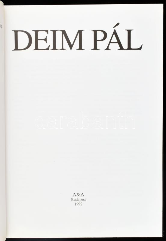 Leírás: Kolozsváry Marianna: Deim Pál. Bp., 1992, A&A. Gazdag képanyaggal, Deim Pál munkáinak reprodukcióival illusztrálva. Kiadói kartonált papírkötés.