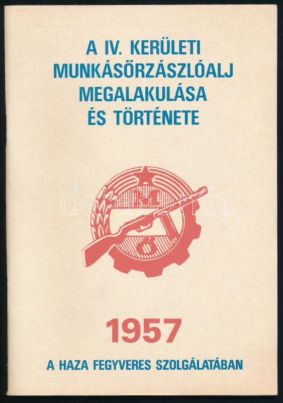 A IV. kerületi munkásőrzászlóalj megalakulása és története. Összeáll.: Diósi László. Bp., 1987, Szikra-ny., 63+(1) p. Fekete-fehér fotókkal illusztrált. Kiadói tűzött papírkötés, jó állapotban. Megjelent 500 példányban.