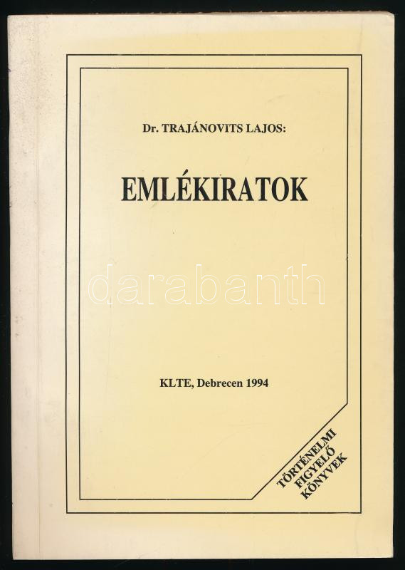 Dr. Trajánovits Lajos: Emlékiratok. Életem története. Pénzügyminisztériumi évek (1935-1948). Történelmi FigyelÅ‘ Könyvek 2. Debrecen, 1993, Kossuth Lajos Tudományegyetem. Kiadói papÃrkötés. Megjelent 500 példányban.