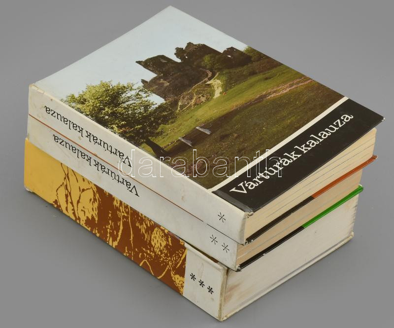 Vártúrák kalauza I-III. köt. Teljes! I. köt.: Észak-magyarországi, alföldi várak és vártúra-útvonalak. II. köt.: Dunántúli várak és vártúra-útvonalak. III. köt.: Vártúrák Csehszlovákiában és Romániában. Bp., 1975-1976-1983., Sport. Fekete-fehér fotókkal. Kiadói kartonált papírkötés., a III. kötet gerincén sérüléssel.