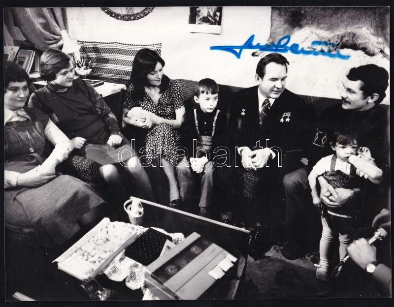 Leírás: cca 1980 Farkas Bertalan (1949-) űrhajós Kubaszovval és családjukkal autográf aláírással. 24x18 cm