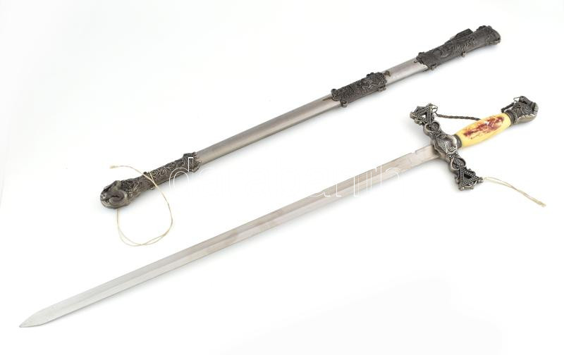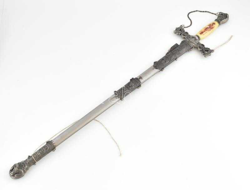 Leírás: Fantázia kard, kosfejes hüvellyel, díszes markolattal. . 100 cm