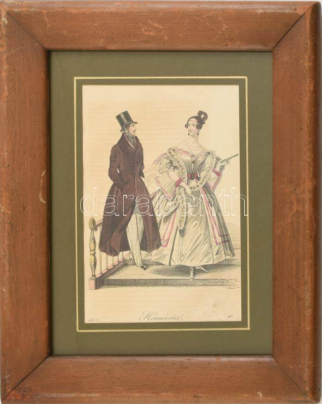 Leírás: Dekoratív fakeret, benne 1835. Honművész divat metszettel. 25x19 cm