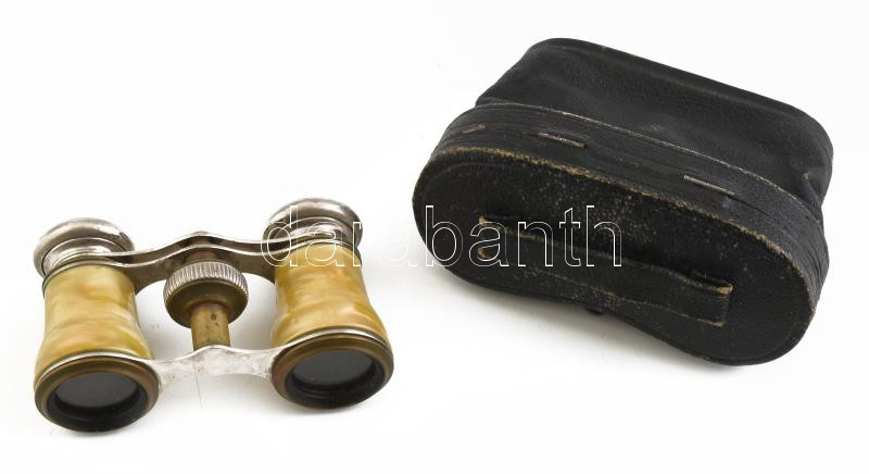 Leírás: Régi színházi látcső, működik, kopott bőr tokban, 6,5x9,5x3 cm