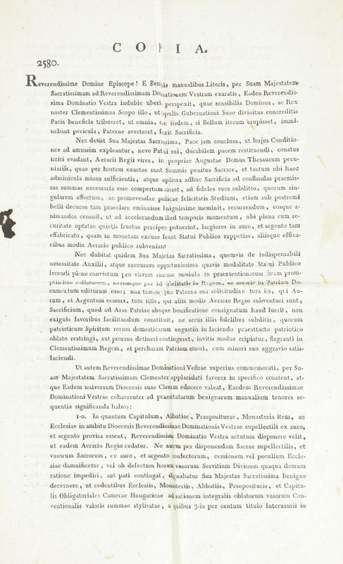 Leírás: 1809 József nádor nyomtatott körlevele püspökökhöz