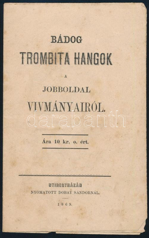 1869 Bádog trombitahangok a jobboldal vívmányairól nyíregyháza 4p https://www.darabanth.com/hu/439-Gyorsarveres/439.0/Mutargy-papirregiseg-egyeb/Nyomtatvanyok~1500008/1869-Badog-trombitahangok-a-jobboldal-vivmanyairol-nyiregyhaza-4p~II2874591