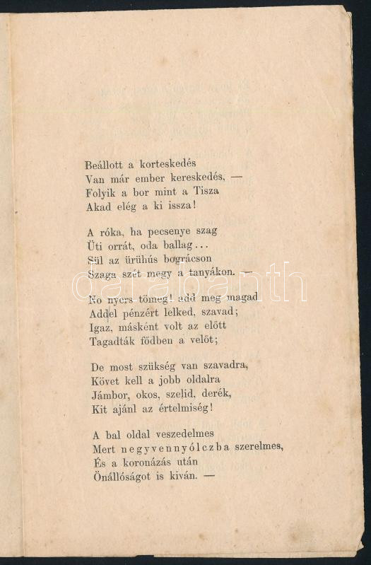Leírás: 1869 Bádog trombitahangok a jobboldal vívmányairól nyíregyháza 4p