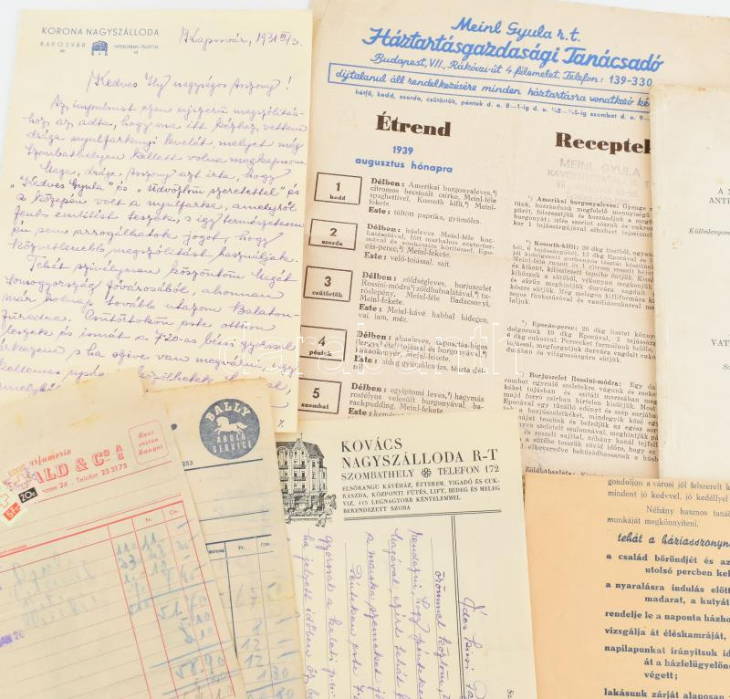 Leírás: Zacskónyi Vegyes papírrégiség tétel számlák, okmányok, reklámok