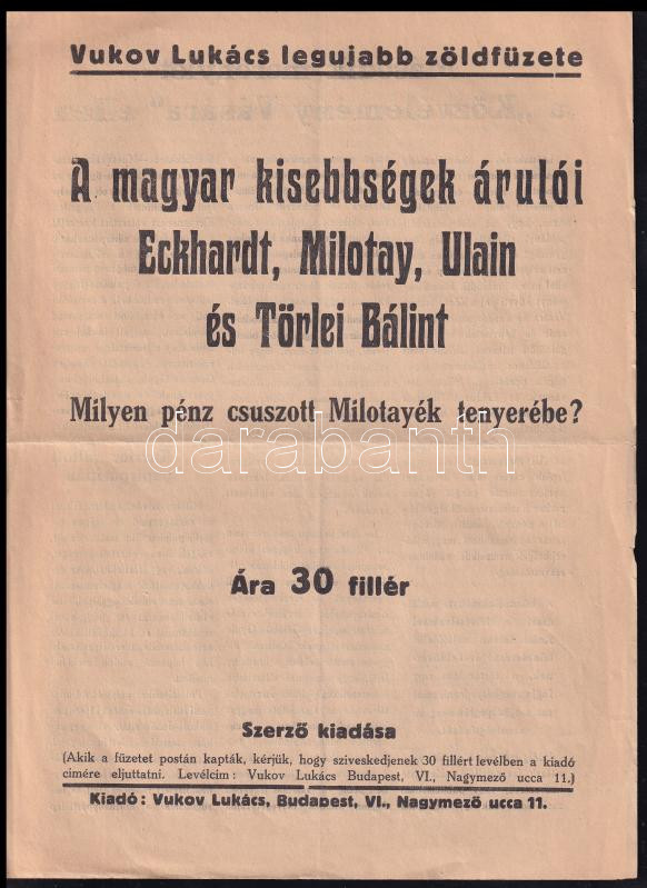 Leírás: cca 1930 magyar kisebbségek árulói c. pamflet 4p
