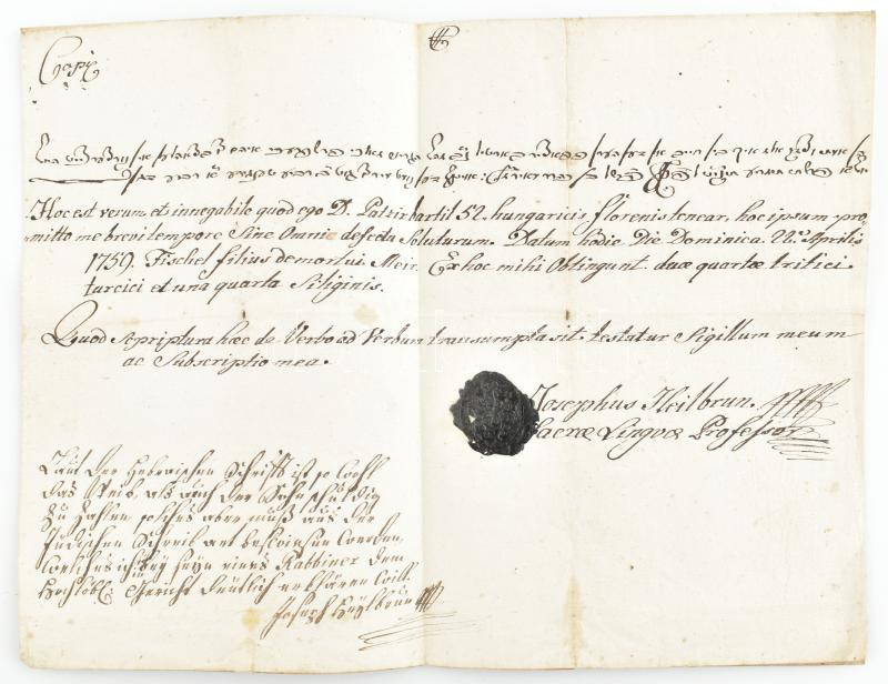 1759 Jiddis, latin és német nyelven írt váltó 52 magyar forintról https://www.darabanth.com/hu/439-Gyorsarveres/439.0/Mutargy-papirregiseg-egyeb/Okmanyok~1000020/1759-Jiddis-latin-es-nemet-nyelven-irt-valto-52-magyar-forintrol~II2884561