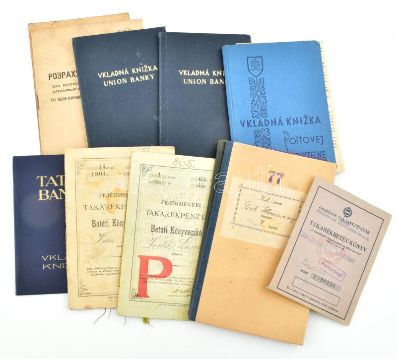 Leírás: 1901-1977 Vegyes betétkönyvek, 9 db, közte magyar, szlovák, kárpátaljai is